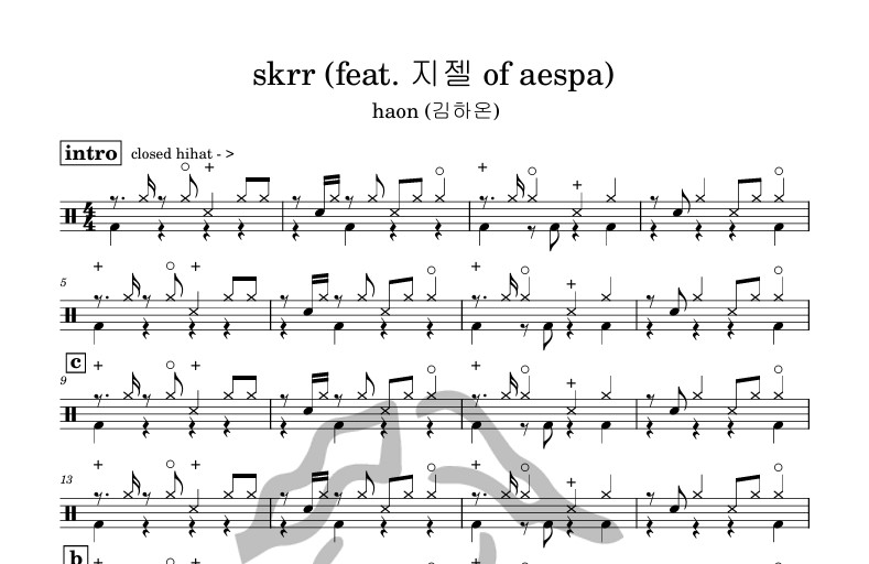 [은규네스튜디오] 드럼악보 haon (김하온) - skrr (feat. 지젤 of aespa)