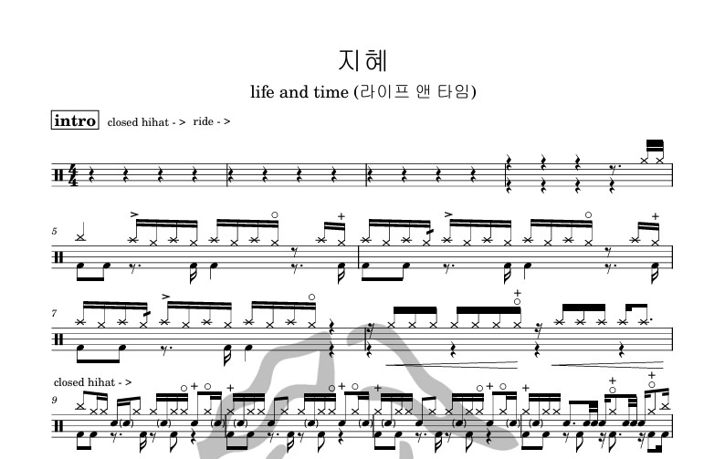 [은규네스튜디오] 드럼악보 life and time (라이프 앤 타임) - 지혜