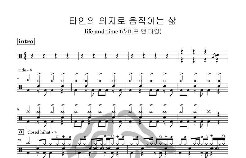 [은규네스튜디오] 드럼악보 life and time (라이프 앤 타임) - 타인의 의지로 움직이는 삶