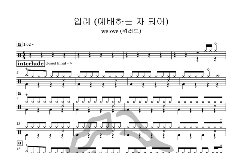 [은규네스튜디오] 드럼악보 welove (위러브) - 입례 (예배하는 자 되어)