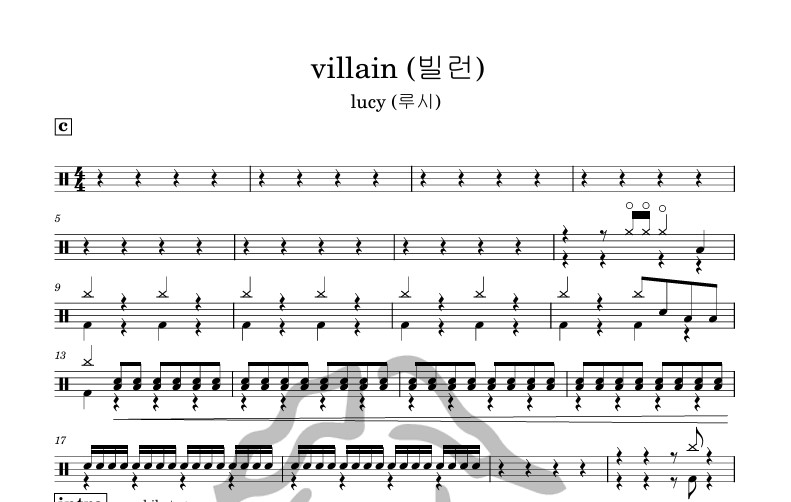 [은규네스튜디오] 드럼악보 lucy (루시) - villain (빌런)