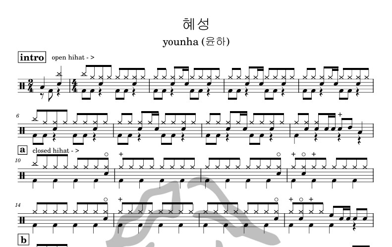 [은규네스튜디오] 드럼악보 younha (윤하) - 혜성