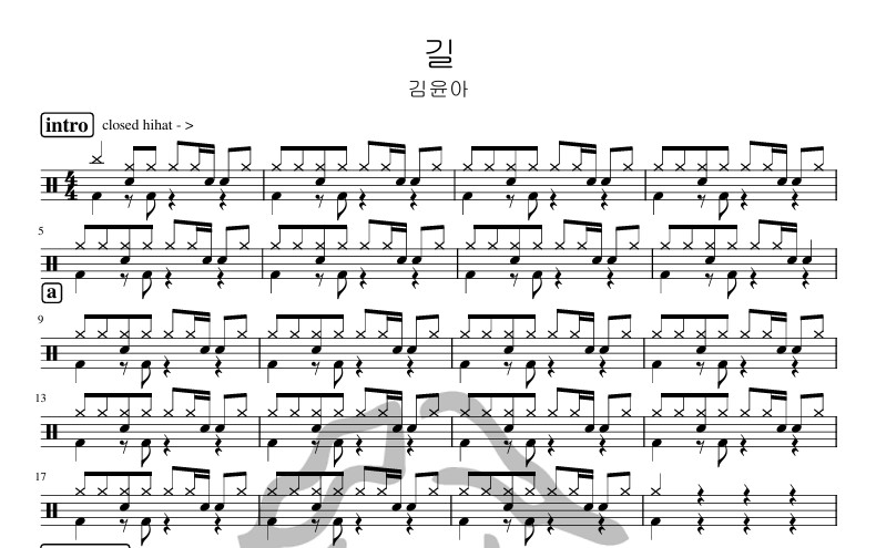 [은규네스튜디오] 드럼악보 김윤아 - 길