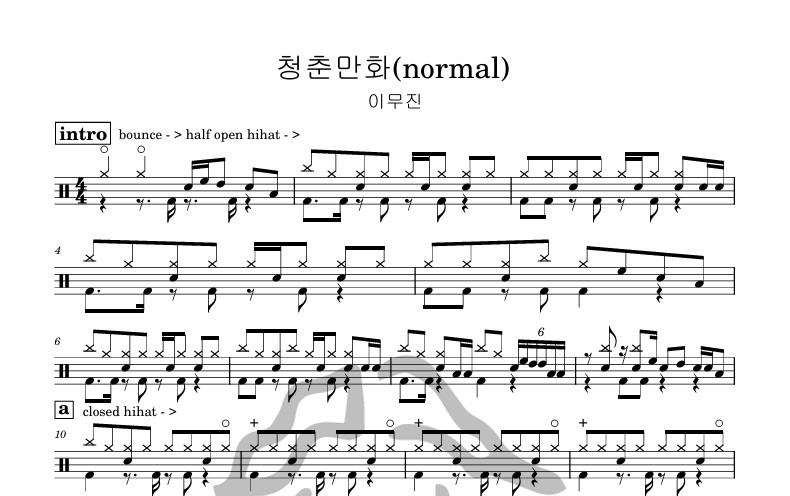 [은규네스튜디오] 드럼악보 이무진 - 청춘만화(normal)