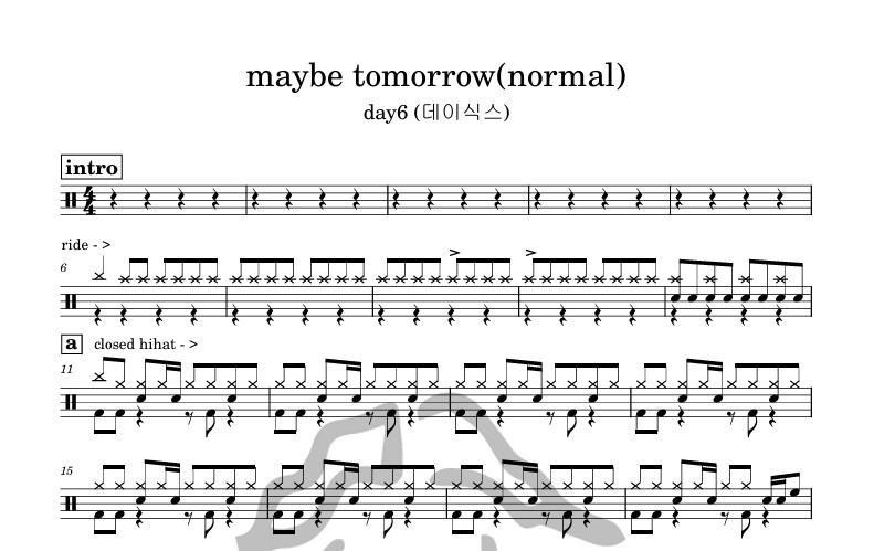 [은규네스튜디오] 드럼악보 day6 (데이식스) - maybe tomorrow(normal)