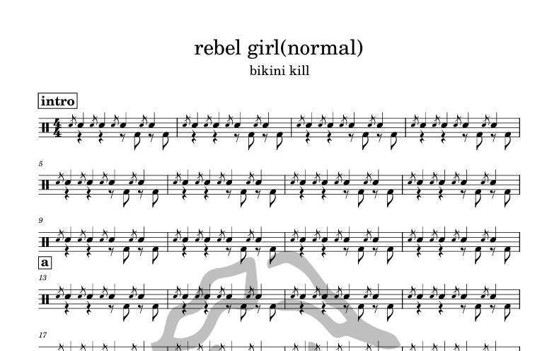 [은규네스튜디오] 드럼악보 bikini kill - rebel girl(normal)