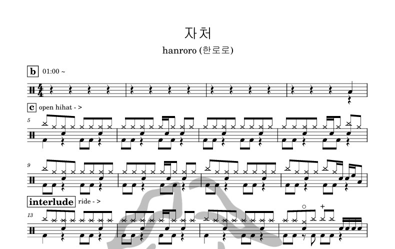 [은규네스튜디오] 드럼악보 hanroro (한로로) - 자처