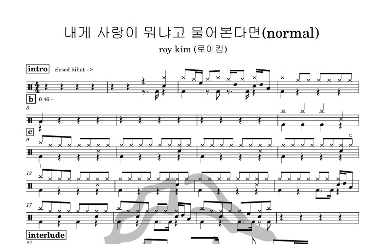[은규네스튜디오] 드럼악보 roy kim (로이킴) - 내게 사랑이 뭐냐고 물어본다면(normal)