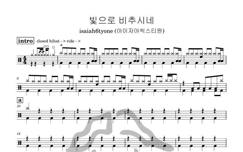[은규네스튜디오] 드럼악보 isaiah6tyone (아이자야씩스티원) - 빛으로 비추시네