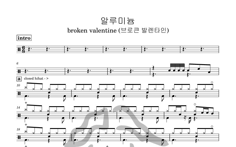 [은규네스튜디오] 드럼악보 broken valentine (브로큰 발렌타인) - 알루미늄