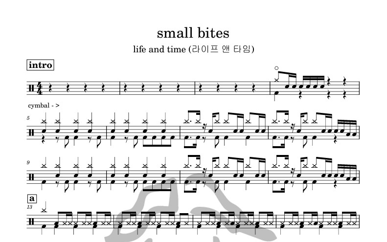 [은규네스튜디오] 드럼악보 life and time (라이프 앤 타임) - small bites