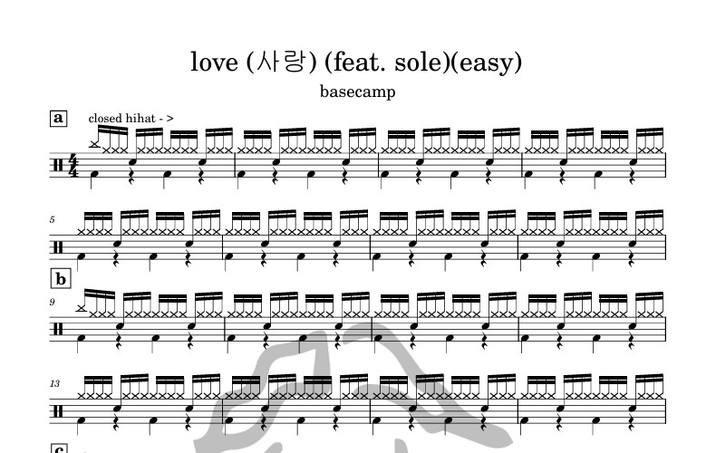 [은규네스튜디오] 드럼악보 basecamp - love (사랑) (feat. sole)(easy)