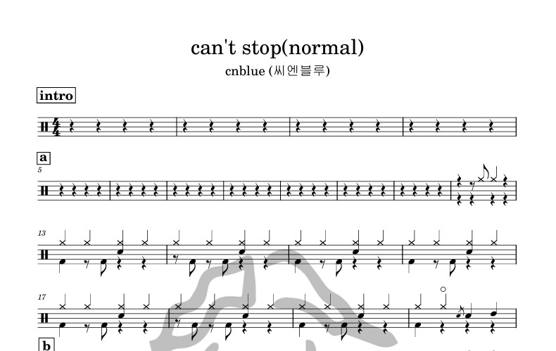 [은규네스튜디오] 드럼악보 cnblue (씨엔블루) - can't stop(normal)