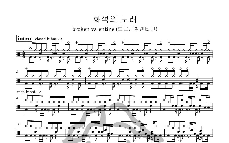 [은규네스튜디오] 드럼악보 broken valentine (브로큰발렌타인) - 화석의 노래
