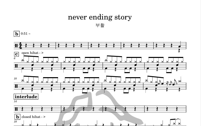 [은규네스튜디오] 드럼악보 부활 - never ending story