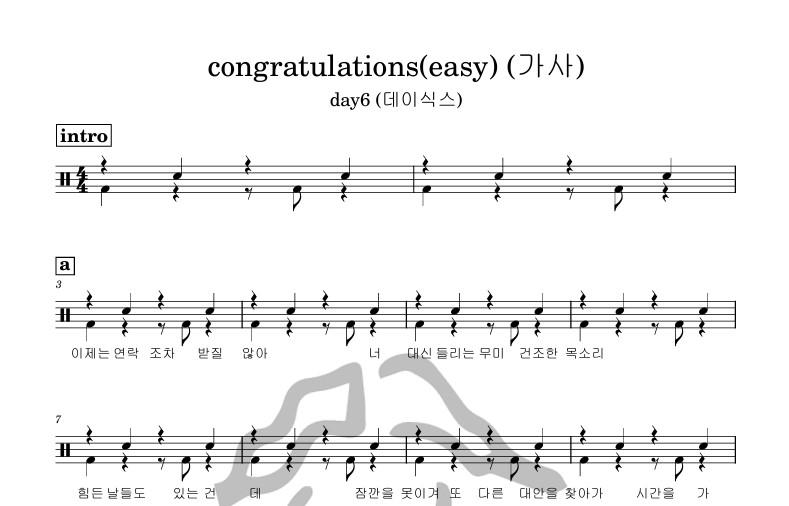 [은규네스튜디오] 드럼악보 day6 (데이식스) - congratulations(easy) (가사)