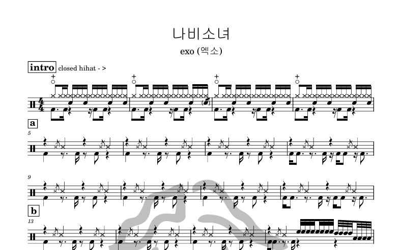 [은규네스튜디오] 드럼악보 exo (엑소) - 나비소녀