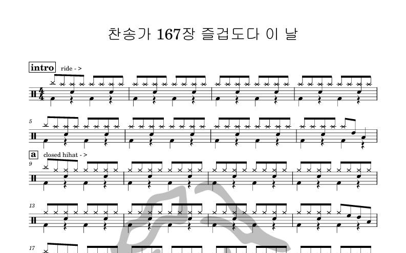 [은규네스튜디오] 드럼악보 찬송가 167장 즐겁도다 이 날