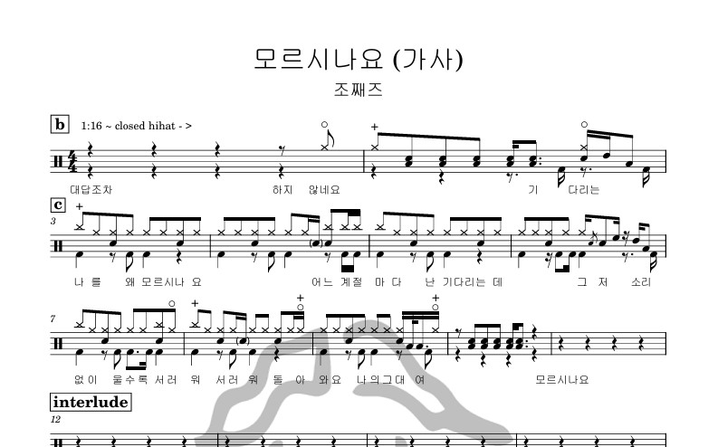 [은규네스튜디오] 드럼악보 조째즈 - 모르시나요 (가사)