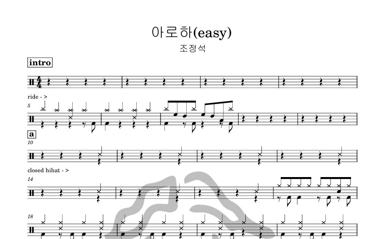 [은규네스튜디오] 드럼악보 조정석 - 아로하(easy)