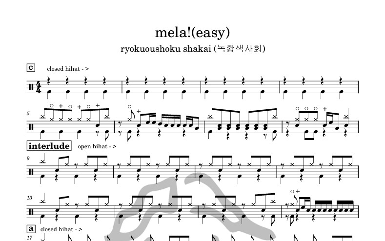 [은규네스튜디오] 드럼악보 ryokuoshoku shakai (녹황색사회) - mela!(easy)