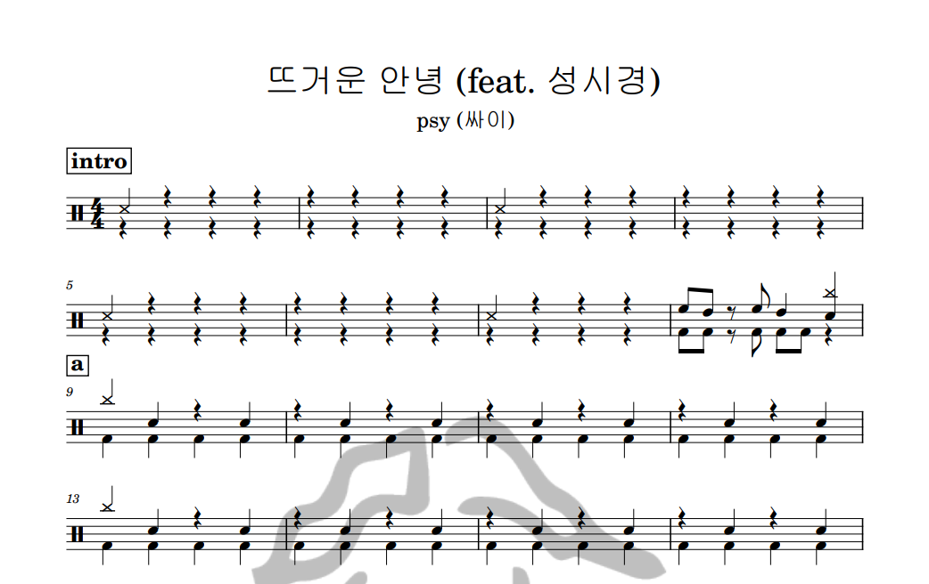 [은규네스튜디오] 드럼악보 psy (싸이) - 뜨거운 안녕 (feat. 성시경)
