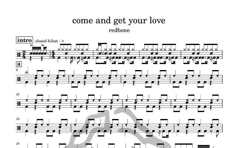 [은규네스튜디오] 드럼악보 redbone - come and get your love