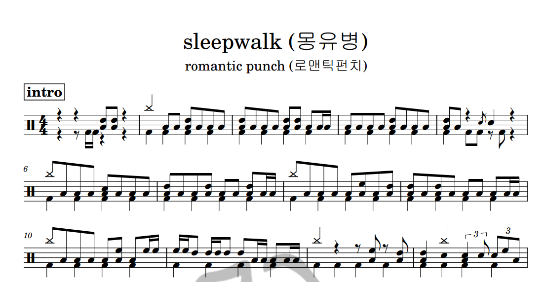 [은규네스튜디오] 드럼악보 romantic punch (로맨틱펀치) - 몽유병 (밴드의 시대 ver.)