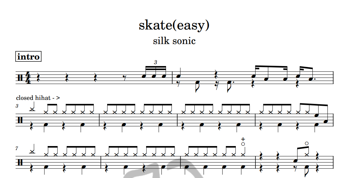 [은규네스튜디오] 드럼악보 silk sonic - skate(easy)