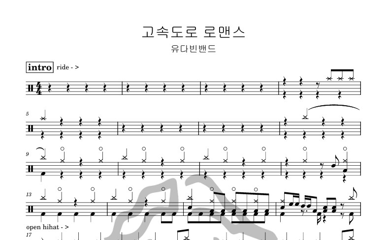 [은규네스튜디오] 드럼악보 유다빈밴드 - 고속도로 로맨스