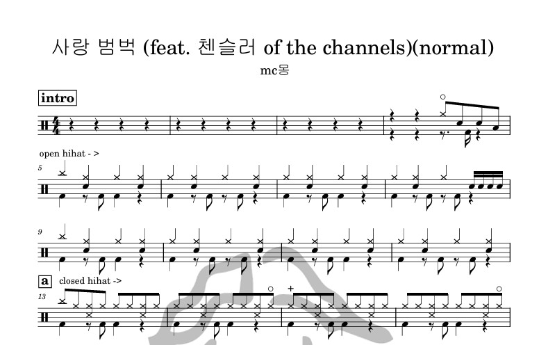 [은규네스튜디오] 드럼악보 mc몽 - 사랑 범벅 (feat. 첸슬러 of the channels)(normal)
