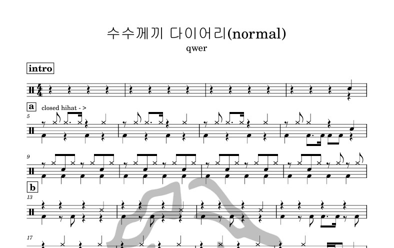 [은규네스튜디오] 드럼악보 qwer - 수수께끼 다이어리(normal)