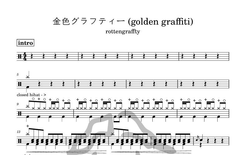 [은규네스튜디오] 드럼악보 rottengraffty - 金色グラフティー (golden graffiti)