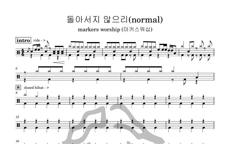 [은규네스튜디오] 드럼악보 markers worship (마커스워십) - 돌아서지 않으리(normal)