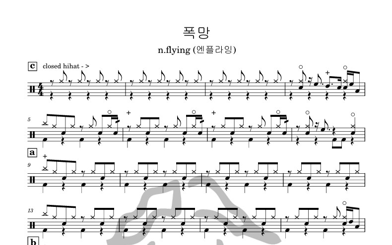 [은규네스튜디오] 드럼악보 n.flying (엔플라잉) - 폭망