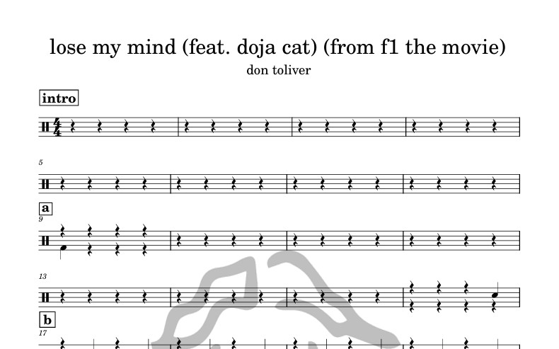 [은규네스튜디오] 드럼악보 don toliver - lose my mind (feat. doja cat) (from f1 the movie)
