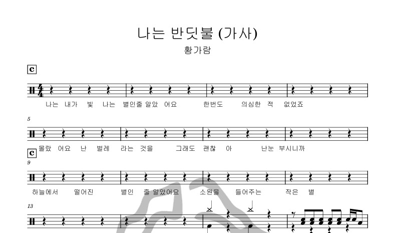 [은규네스튜디오] 드럼악보 황가람 - 나는 반딧불 (가사)