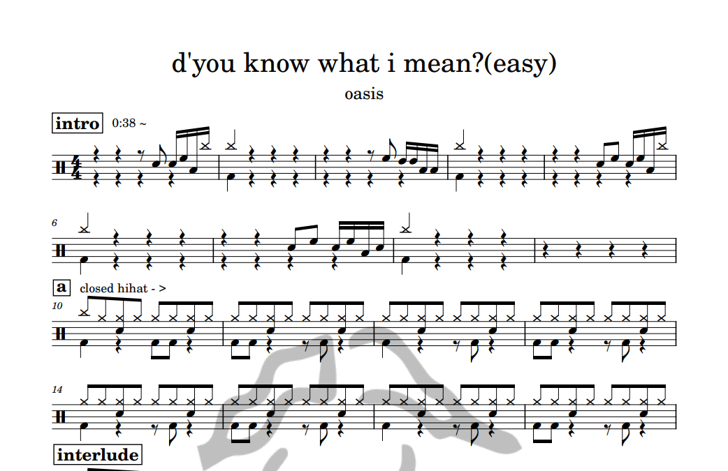 [은규네스튜디오] 드럼악보 oasis - d'you know what i mean?(easy)
