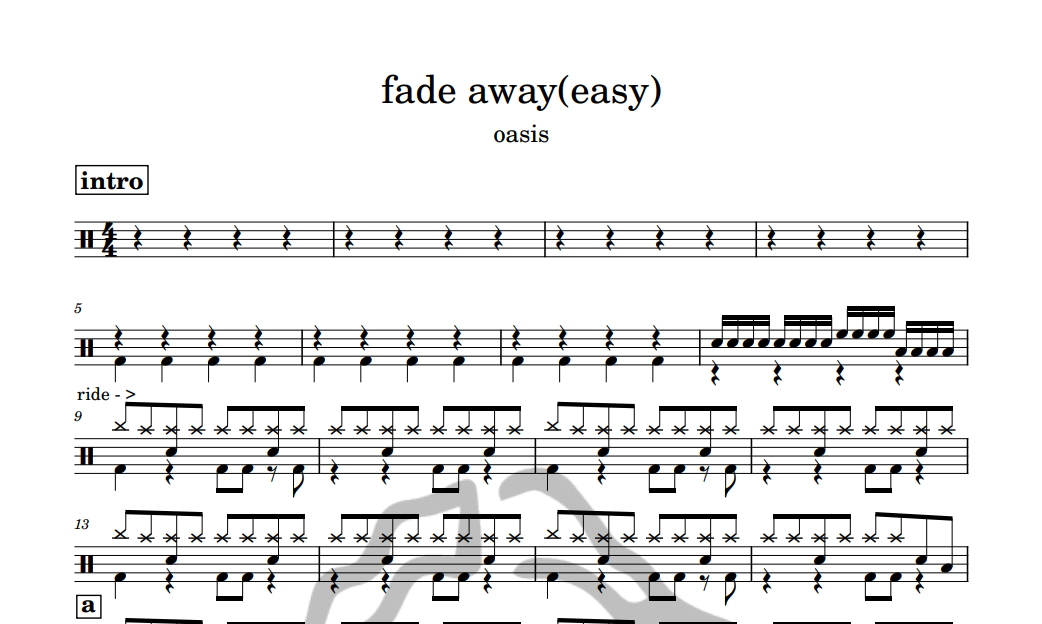 [은규네스튜디오] 드럼악보 oasis - fade away(easy)