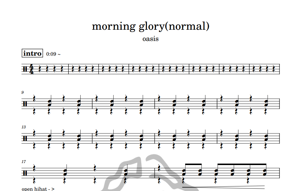 [은규네스튜디오] 드럼악보 oasis - morning glory(normal)