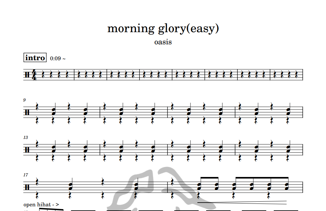 [은규네스튜디오] 드럼악보 oasis - morning glory(easy)
