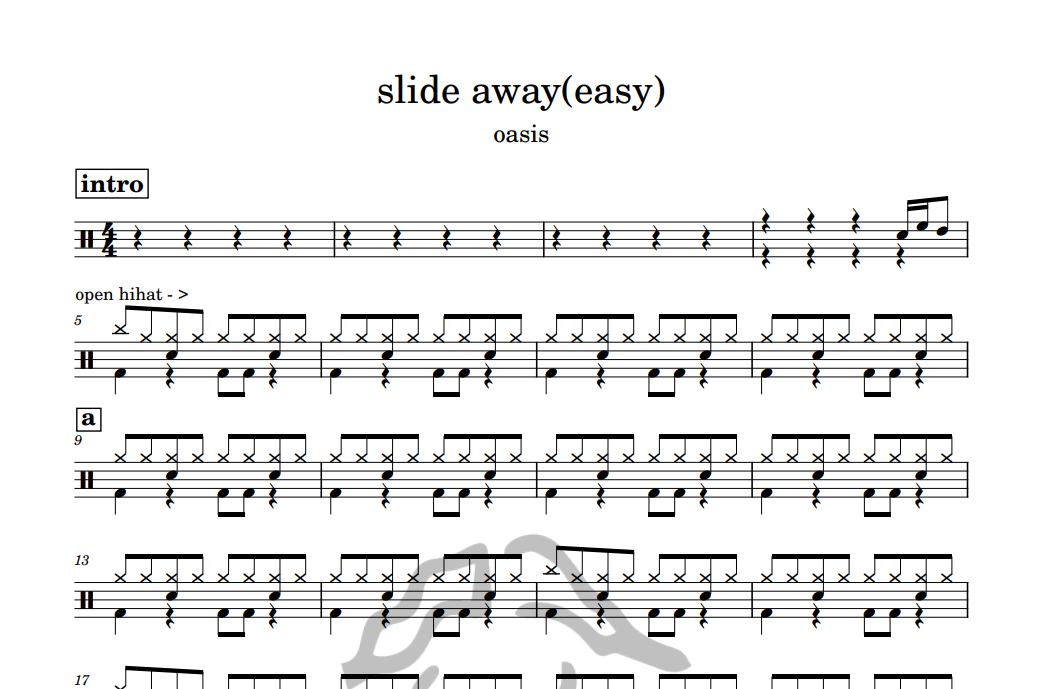 [은규네스튜디오] 드럼악보 oasis - slide away(easy)