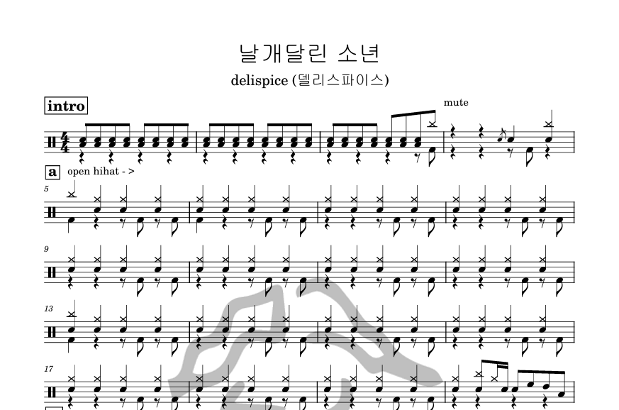 [은규네스튜디오] 드럼악보 delispice (델리스파이스) - 날개달린 소년