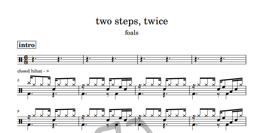 [은규네스튜디오] 드럼악보 foals - two steps, twice