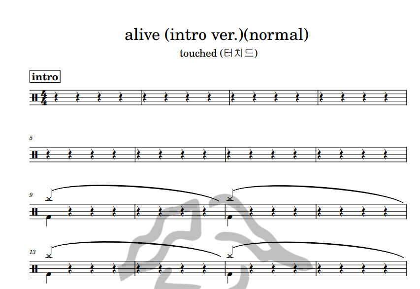[은규네스튜디오] 드럼악보 touched (터치드) - alive (intro ver.)(normal)