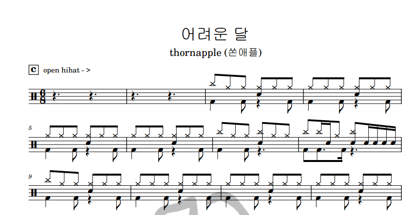 [은규네스튜디오] 드럼악보 thornapple (쏜애플) - 어려운 달