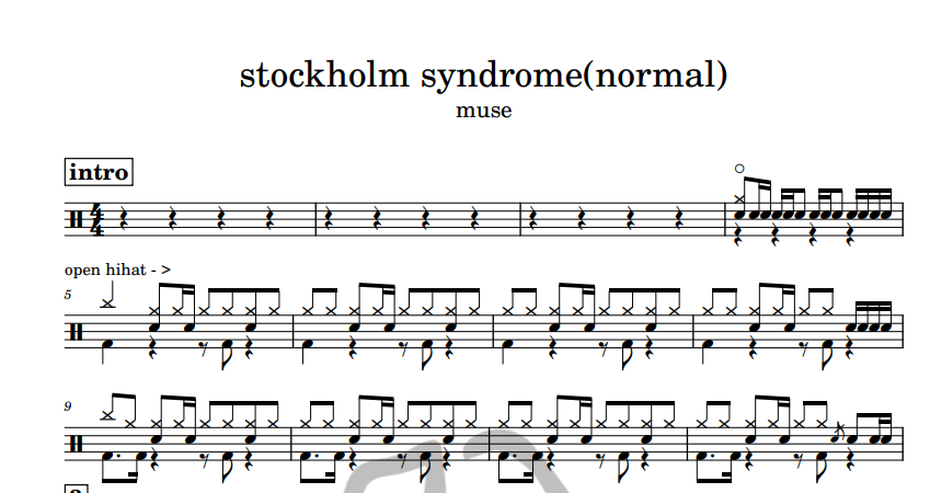 [은규네스튜디오] 드럼악보 muse - stockholm syndrome(normal)