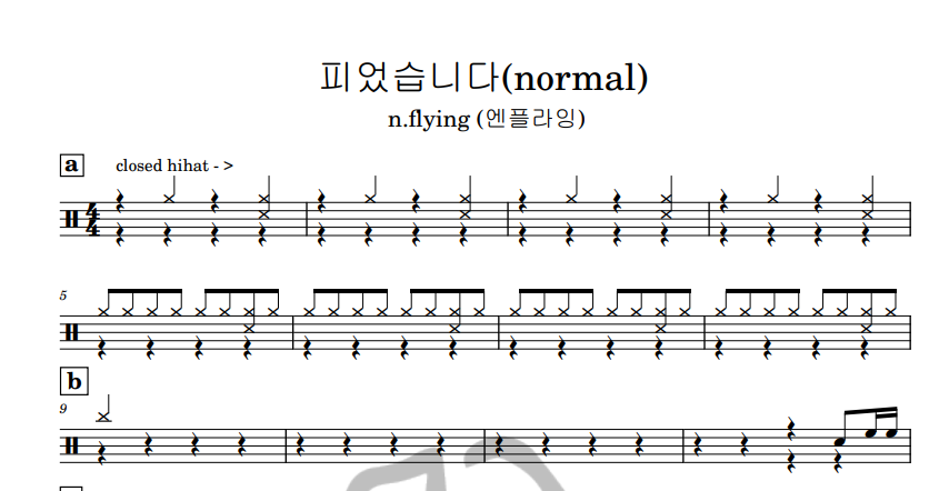 [은규네스튜디오] 드럼악보 n.flying (엔플라잉) - 피었습니다(normal)