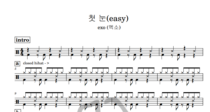 [은규네스튜디오] 드럼악보 exo (엑소) - 첫 눈(easy)