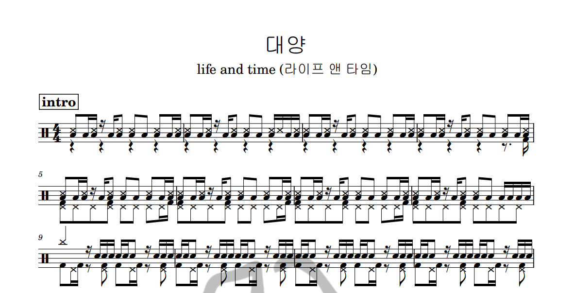 [은규네스튜디오] 드럼악보 life and time (라이프 앤 타임) - 대양